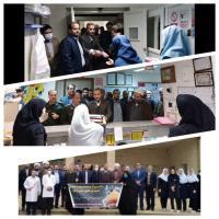 به مناسبت ولادت حضرت زینب و روز پرستار ، مسئولین شهرستان از جمله امام جمعه ، فرماندار ، جمعی از اعضای شورای تامین و اداری با حضور در بیمارستان و بازدید از بخش های مختلف بیمارستان با اهدای گل و شیرینی و تقدیرنامه از پرستاران بیمارستان امام خمینی(ره) تقدیر به عمل آمد و از زحمات این عزیزان تقدیر و تشکر نمودند .